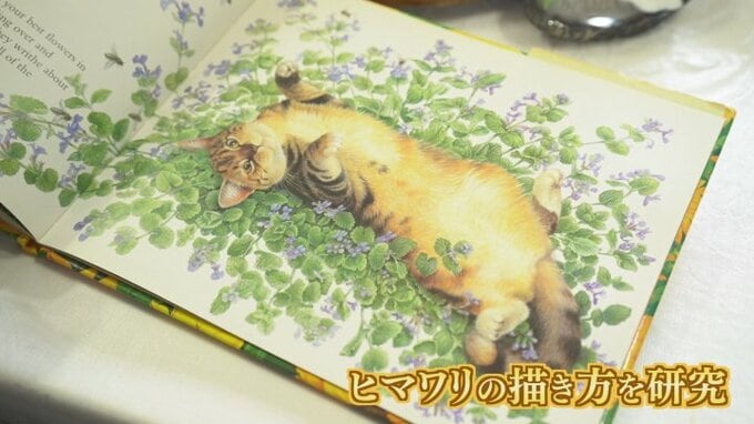 これまで「ネコ」を中心に描いていたので、今回の制作にあたりヒマワリの描き方を本などで研究したそうです。