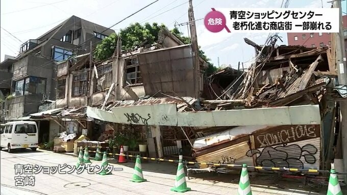 宮崎市の中心部にある老朽化の進んだ商店街が一部、崩れているのが見つかりました。6日未明に崩れたものとみられます。(下川祥子記者)「橘通りすぐ近くにあるこちら、建物が大きく崩れ落ち、道に止めてある自転…
