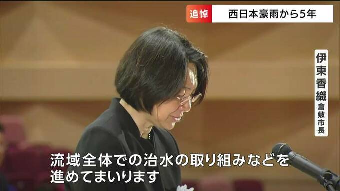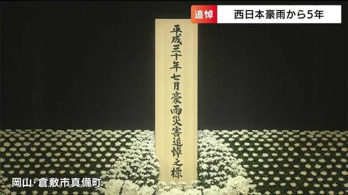 2018年各地で甚大な被害をもたらした西日本豪雨から5年を迎えました。多くの犠牲者を出した倉敷市真備町をはじめ、岡山県内の被災地では追悼式が行われ、参列者らは復興への誓いを新たにしています。