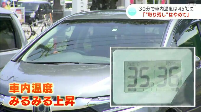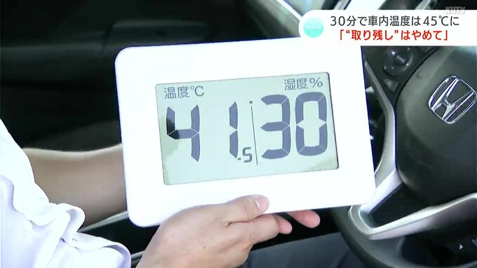 「ドアを開けた瞬間、熱気を感じます。車内の温度を見てみますと41.5度となっています。これだけ短時間で温度が上がるなんて怖さを感じます」