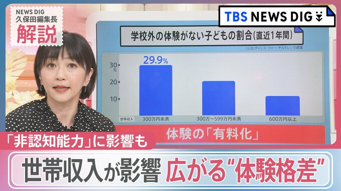 受験や就活で重要視されつつあるコミュ力などの「非認知能力」。子どもの頃の「体験」がその能力を伸ばす鍵とされています。しかし、民間団体の調査では、世帯年収300万円未満の家庭の子どもの3人に1人が学校外の…