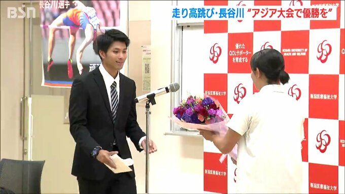 アジア大会の開幕を前に、母校の新潟医療福祉大学で6日に激励会が開かれました。