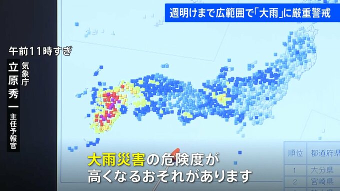 大雨にも厳重な警戒が必要です。気象庁によりますと、土日をはさんで週明けの10日ごろにかけ、梅雨前線が本州付近に停滞して活発化するため、西日本や東日本の広い範囲で雷を伴った非常に激しい雨が降り、大雨とな…