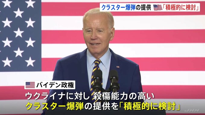 アメリカのバイデン政権はウクライナに対し、殺傷能力の高いクラスター爆弾の提供を「積極的に検討している」と明らかにしました。クラスター爆弾は大量の小さな爆弾を広範囲にばらまく兵器で、不発弾による民間人…