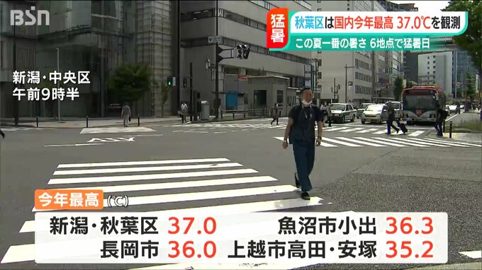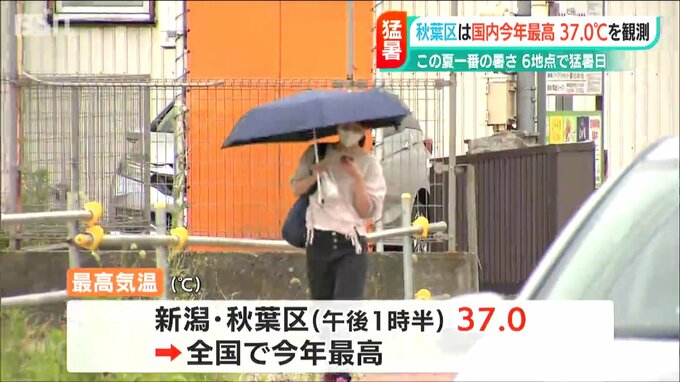 【記者リポート】「こちらは、今年国内最高となる37度を観測した新潟市秋葉区です。湿気が多いのか、じめじめとして肌にまとわりつくような暑さを感じます」