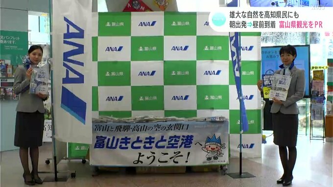 北陸地方・富山県への観光客を増やそうと高知龍馬空港で富山県の職員らが観光PRを行いました。富山県観光をPRしたのは富山県と全日空の職員です。富山県と全日空は航空便の利用促進などを図る連携協定を結んでいて…