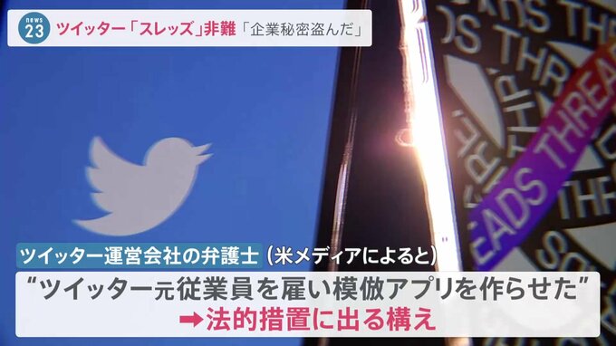 メタ社がツイッターに対抗して開発した新たなSNS「スレッズ」。街中の人からは、その見た目や機能がツイッターに似ているという声も…。ツイッター側はメタ社に対し「企業秘密を盗んだ。元従業員を雇って模倣アプ…