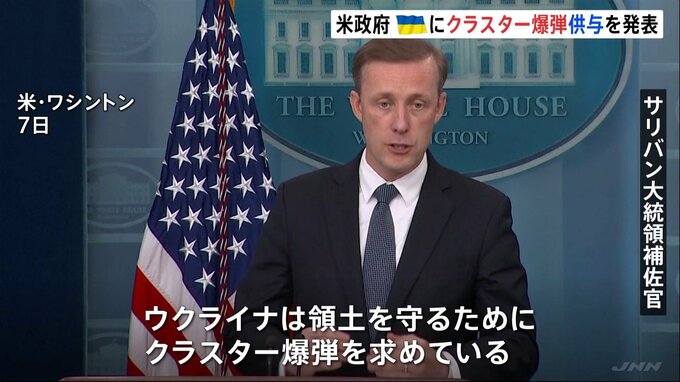 ロシアによるウクライナ侵攻からきょうで500日となります。こうしたなか、アメリカ政府はウクライナに殺傷力の高いクラスター爆弾を供与すると発表しました。アメリカ サリバン大統領補佐官「ウクライナは領土を…