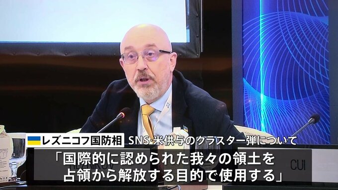 アメリカ政府がウクライナに供与すると発表した殺傷力の高いクラスター爆弾について、ウクライナの国防相は「領土奪還の目的のためだけに使用する」と強調しました。レズニコフ国防相は自身のSNSへの投稿で、アメ…