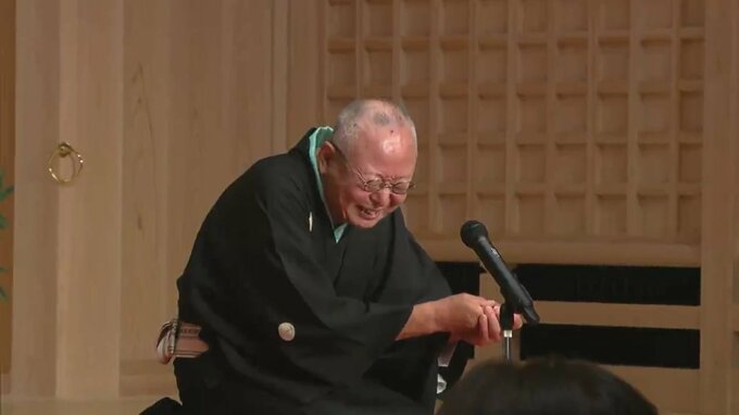 (雷門喜助さん)「きょうやっと私も噺家になりました。この間歯医者で歯を抜いたんですよ。歯がないんですよ。これが本当の噺家なんですよ」