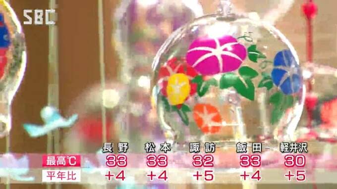 10日の最高気温は長野、松本、飯田で33度と予想されるなど、各地で30度以上の真夏日となる見込みで、熱中症に注意が必要です。