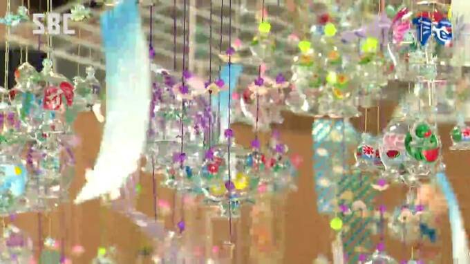 JR上諏訪駅で20年以上続く“夏のおもてなし”で、改札前のコンコースにおよそ300個が飾り付けられました。