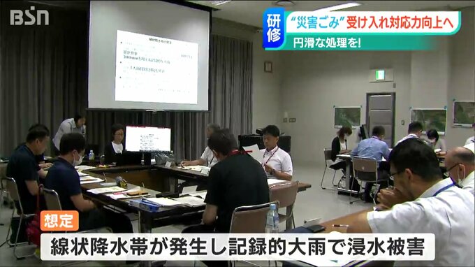 水害や台風被害などで発生する大量の「災害ごみ」の処理を円滑に進めるため、新潟県や各自治体の担当者が参加した研修会が開かれ、災害時の対応を確認しました。