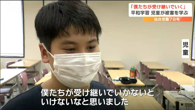 「戦争の時代に生まれていなかったので、こういうことが起きたのは知らなかった、きょうの機会を得て、仙台に生まれたので、仙台の空襲を知らない世代にぼくたちが受け継いでいかないといけないなと思いました」
