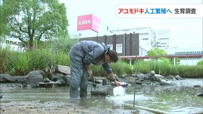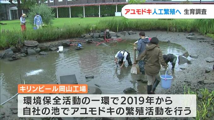 岡山県内など、全国で3つの水域のみで生息が確認されている、天然記念物の「アユモドキ」です。人工繁殖させようとする取り組みを行っている岡山市東区の企業で、生育調査が行われました。