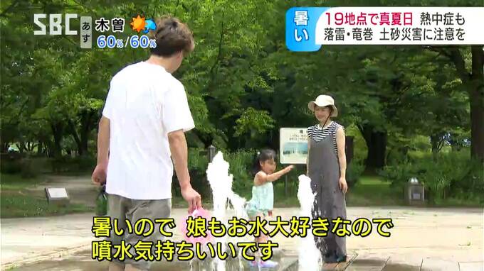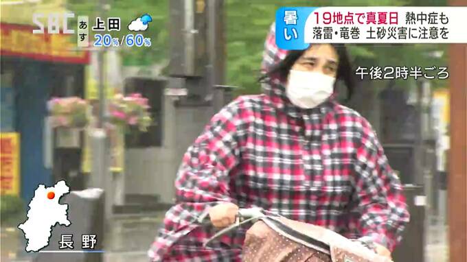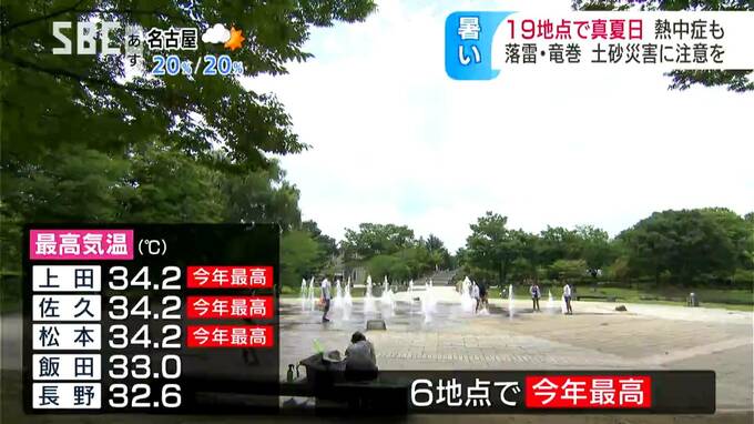 この日は各地で気温が上がり、上田、佐久、松本で34.2度など、県内30の観測地点のうち19か所で真夏日に。
