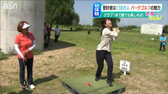 小西さんら仲間が整備した新潟市で第1号となるパークゴルフ場は去年10月にオープンしたばかりです。その手作りコースで、BSN新潟放送の大塩綾子アナウンサーがパークゴルフを体験しました。