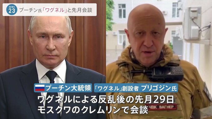 ロシア大統領府は、プーチン大統領が民間軍事会社「ワグネル」の創設者プリゴジン氏と反乱後に会談していたと明らかにしました。ロシアのぺスコフ報道官によりますと、プーチン大統領とプリゴジン氏の会談は、ワグ…