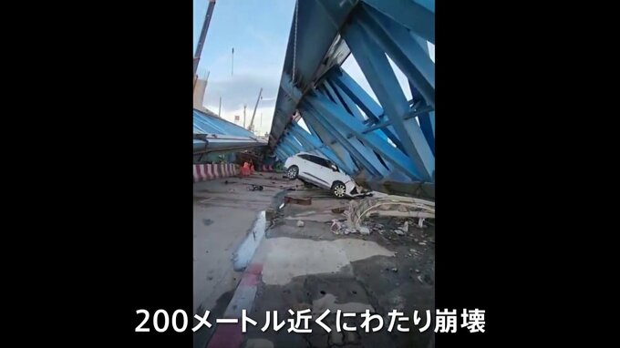 タイの首都バンコクで建設中の高架道路が崩落し、巻き込まれた2人が死亡、16人がけがをしました。大きな音を立てて橋げたなどが崩れ落ちます。現地メディアによりますと、バンコクのラートクラバン区できのう、交…