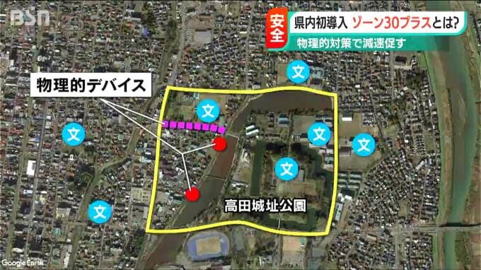 新潟県上越市と上越警察署、国土交通省とが連携し、新潟県内に初めて導入した『ゾーン30プラス』。