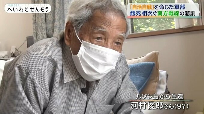 ルソン島から生還した河村俊郎さん(97)は、次々と兵士が餓死していった極限の状況を証言してくれました。
