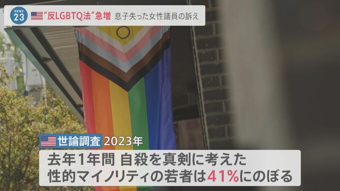 2023年に行われたアメリカの世論調査では、2022年の1年間に自殺を真剣に考えたという性的マイノリティの若者が41%にものぼっています。