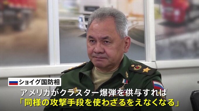 ロシアのショイグ国防相が、アメリカがウクライナにクラスター爆弾を供与すれば、ロシアはウクライナに「同様の攻撃手段を使わざるを得なくなる」とけん制しました。ロシアの国防省は11日、ショイグ国防相がロシア…