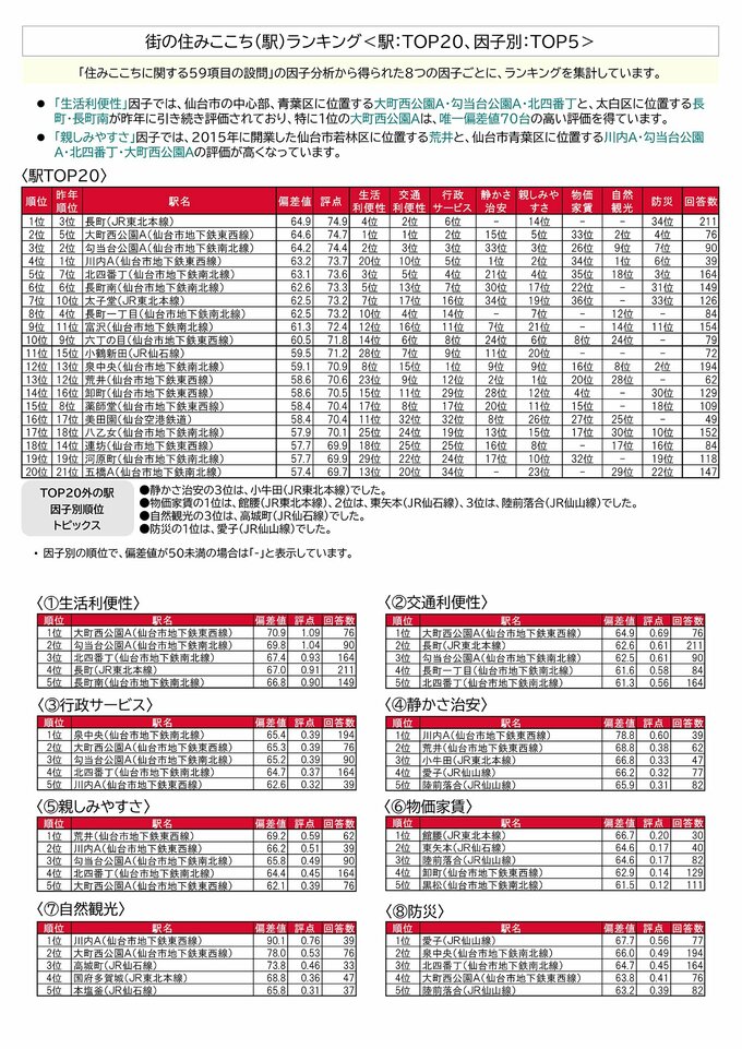 富谷市は、「生活利便性」「行政サービス」「親しみやすさ」「防災」のランキングでも1位を獲得しています。