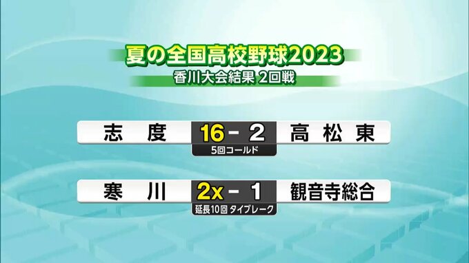 続いて香川大会の結果です。志度が16対2で高松東に快勝しています。
