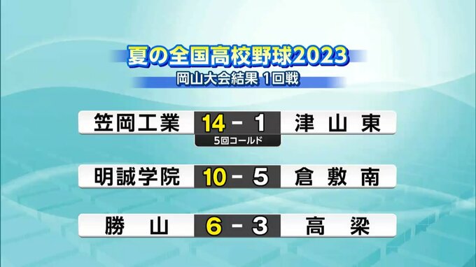 岡山大会このほかの結果です。笠岡工業は14対1で津山東を破り、10年ぶりの1回戦突破を果たしました。