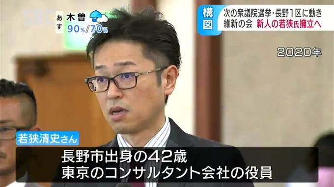 次の衆議院選挙の長野1区に日本維新の会が、新人の若狭清史(わかさきよし)さんを擁立する方針であることが分かりました。