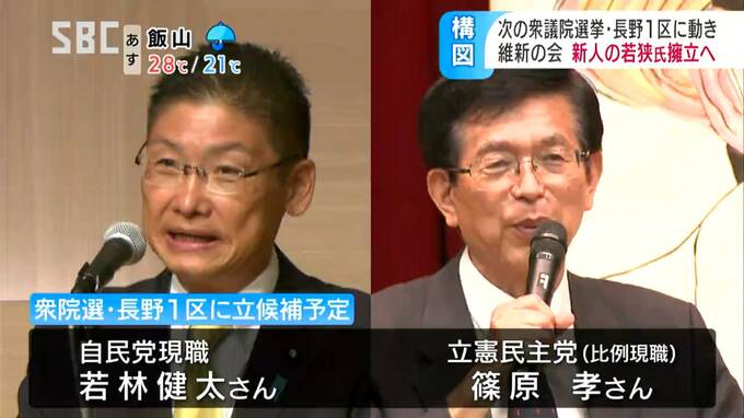長野1区には自民党現職の若林健太(わかばやしけんた)さんと、立憲民主党で比例北信越ブロック現職の篠原孝(しのはらたかし)さんが立候補を予定しています。