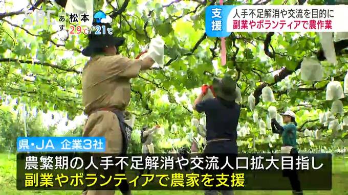 県とJAがつくる団体と企業3社が企画したもので、農繁期の人手不足解消や交流人口の拡大を目指して、副業やボランティアとして作業を手伝います。