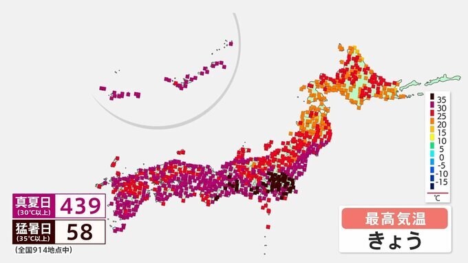 八王子で39.1℃ 35℃以上の「猛暑日」を記録したのは58地点に