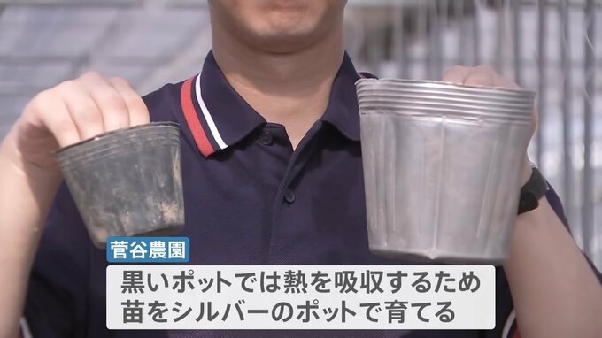 「育苗に関してはこういうシルバーのポットを使って、熱が上がらないようにしてます。普通、黒(のポットを)使うんですけど」