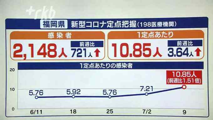 福岡県が13日発表した1週間の定点把握の感染者数は、前の週の1.51倍に増加しました。◆福岡県 前週の1・51倍福岡県の発表によりますと、今月3日から9日までに県内198の医療機関から報告された…