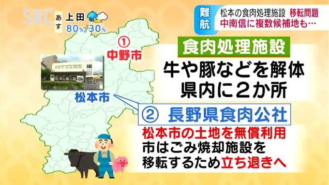 県内に2か所ある食肉処理施設のうち松本市の施設は、市の土地を無償で利用していますが、市がごみの焼却施設を移転新設するため、立ち退きを求められています。