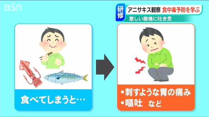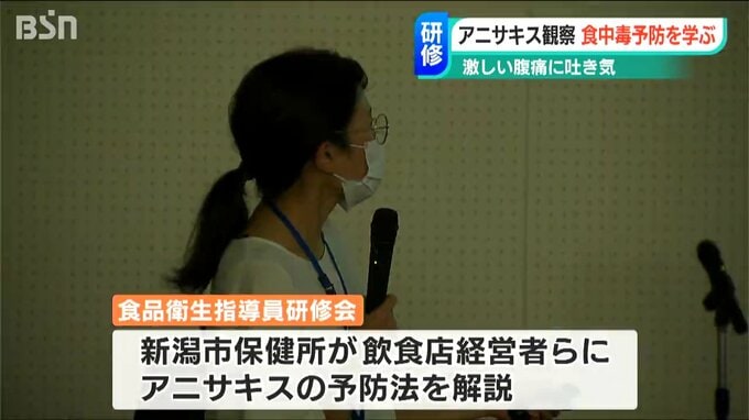 12日は新潟市保健所の職員が、新潟市内で飲食店を経営する人らにアニサキスの予防方法を解説しました。ポイントは、十分な加熱・冷凍を行うこと。新鮮な魚を選び、速やかに内臓を取り除くこと、目でよく確認して除去することです。さらに…