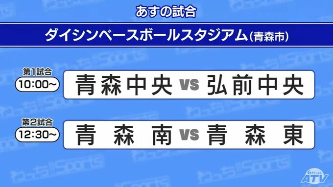 青森市のダイシンベースボールスタジアムでは青森中央は弘前中央と対戦、第2試合は青森南と青森東の青森勢同士が激突します。