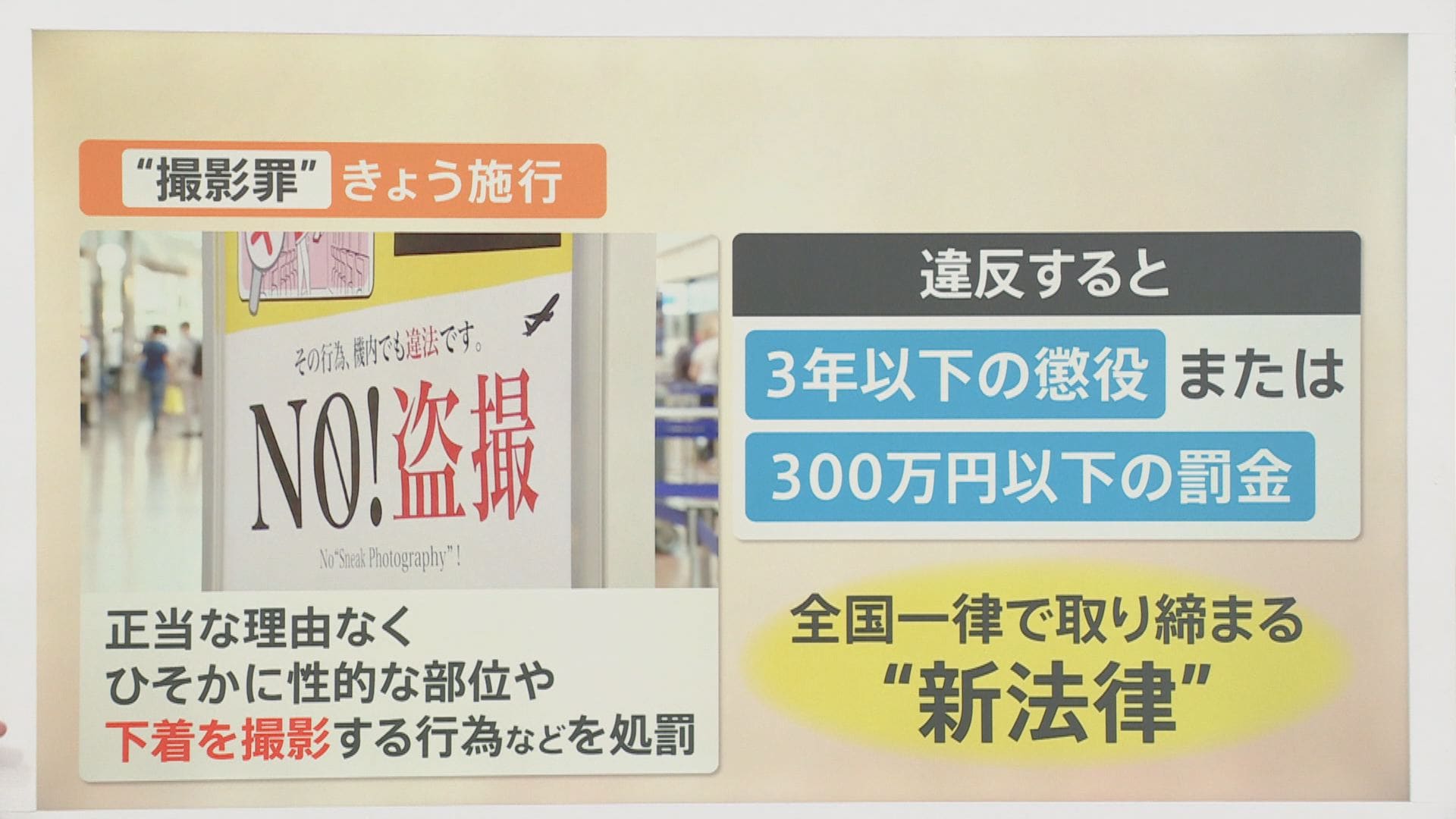 13日から「撮影罪」という新たな法律が施行されました。盗撮が処罰の対象になるというこの法律、その内容を詳しくお伝えします。