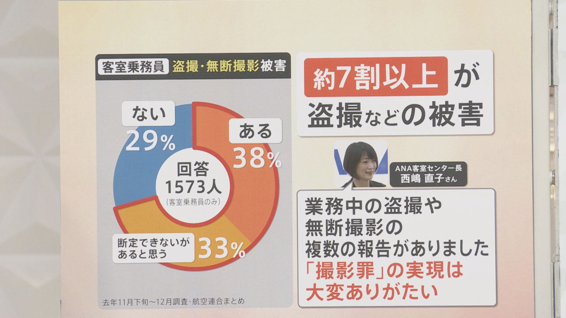ANA客室センター長の西島直子さんは、「業務中の盗撮や、無断撮影の複数の報告がありました。撮影罪の実現は大変ありがたい」と話していました。