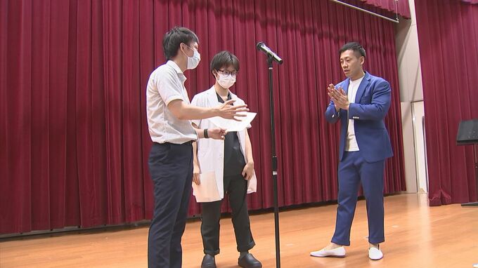 13日、鳥取大学医学部の講堂(鳥取県米子市)で行われたのは「漫才ワークショップ」。