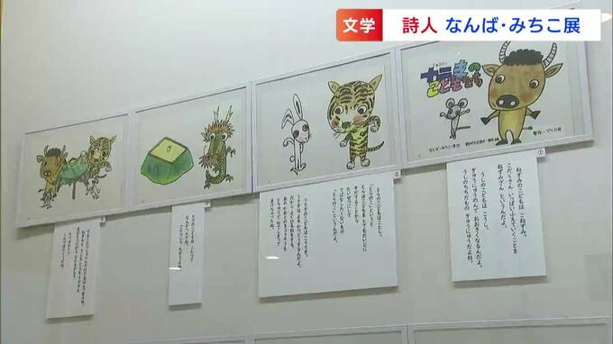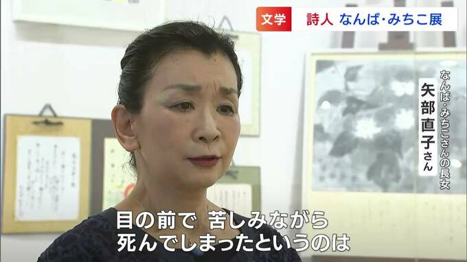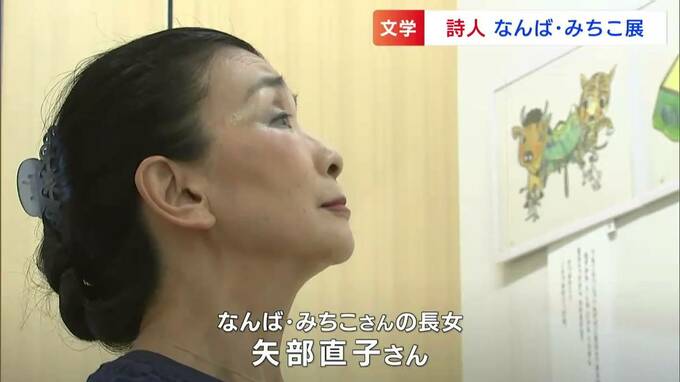 浅口市の原田文学館で開かれているのは、「詩人なんば・みちこ展」です。詩を中心に、短歌や絵本など約70点の作品が展示されています。現在静養中だというみちこさんの代わりに、長女で自身も詩人として活動する直子さんが話してくれました。