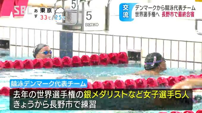 福岡で14日に開幕した水泳の世界選手権に出場するデンマーク代表チームが、長野市で最終合宿をスタートさせました。
