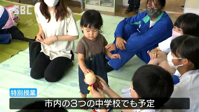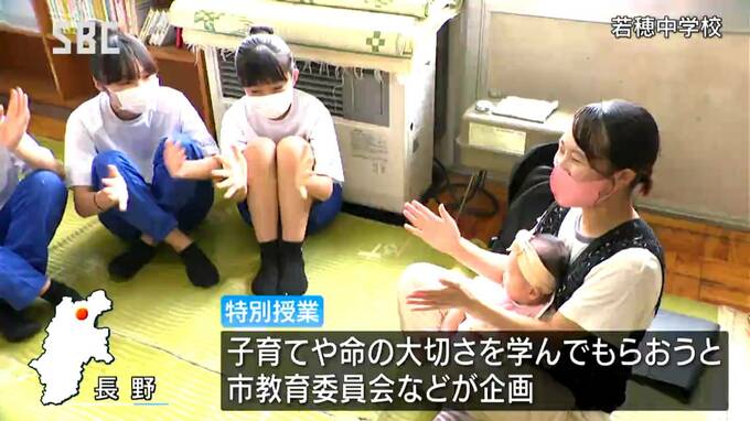 赤ちゃんと触れ合うことで命の大切さなどを学ぶ特別授業が長野市の中学校で、行われました。