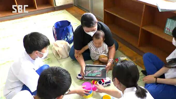 生徒たちは優しく赤ちゃんを抱っこしたり、母親にあやし方を教わったりして、交流を楽しんでいました。