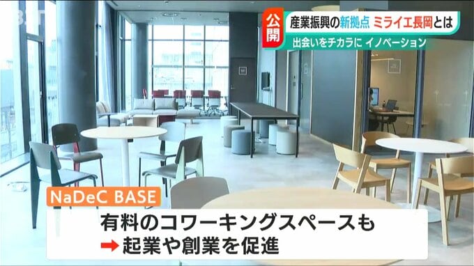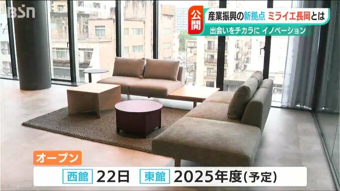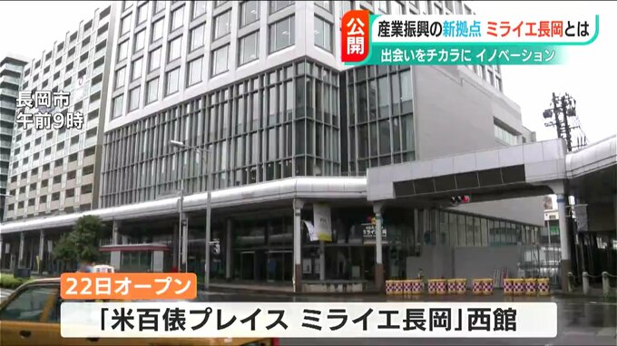 新潟県長岡市が産業振興の新たな拠点として整備する『米百俵プレイス ミライエ 長岡』の西館がオープンを前に14日、報道陣に公開されました。地上10階建てで、市が運営する複合施設や第四北越銀行が入ります。