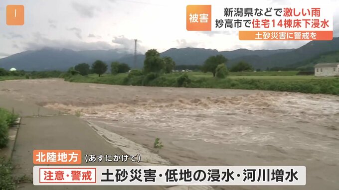 日本海に停滞する梅雨前線に向かって湿った空気が流れ込んでいる影響で、新潟県などで激しい雨となっています。土砂災害への厳重な警戒が必要です。新潟県内では昨夜からきょうにかけて、上越地域を中心に時折激し…