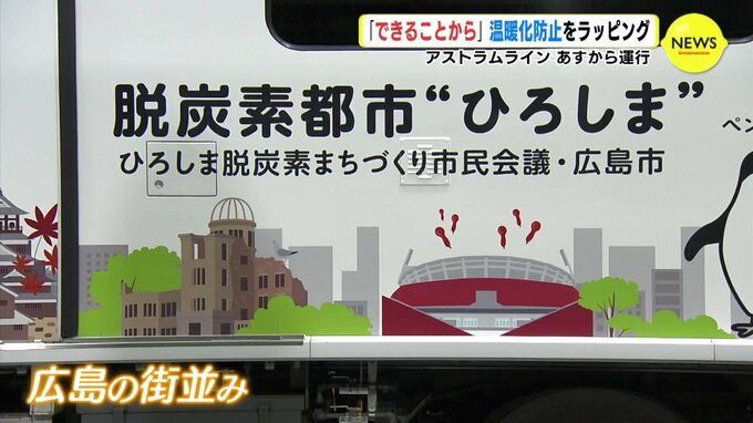 このラッピング車両は、市民や事業者でつくる「ひろしま脱炭素まちづくり市民会議」が中心となって、地球温暖化防止へ行動を起こしてもらおうと企画されました。