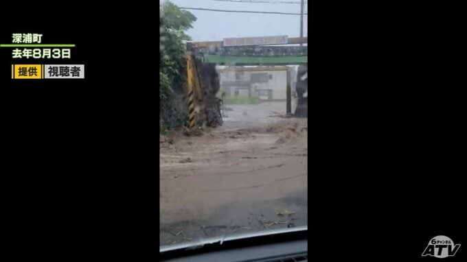 ニュースでもありました100ミリあるいは200ミリ、どれぐらいの雨かといいますと、2022年8月2・3日に前線停滞による大雨がありまして、こちらの映像がそうです。線状降水帯が発生しまして、深浦で大雨そして中小河川が増水氾濫しました。岩木川が増水氾濫したことによって浸水の被害も発生したんです。奥入瀬渓流焼山では、一時通行止めにもなりました。大量の流木が川から氾濫したと。また今別駅周辺では土砂崩れ、そして泥水も駅の構内にも流れ込みました。